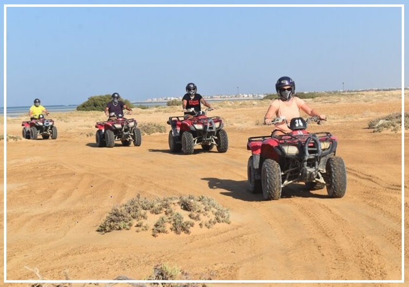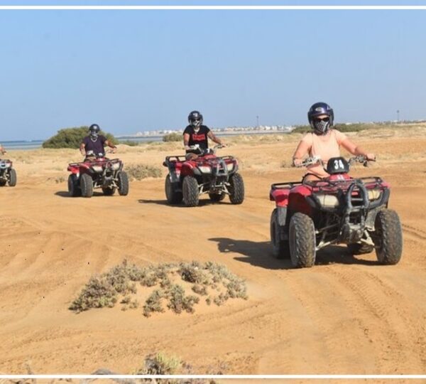 Maceranız, Hurghada çevresindeki büyüleyici çöl manzaralarında unutulmaz bir quad bike gezisi ile başlar. Quad bisikletinize atlayın ve altın kumullar boyunca rehberlerimiz eşliğinde heyecan dolu bir yolculuğa çıkın. Çöl gün batımında gökyüzü turuncu ve pembe tonlarıyla boyanırken büyüleyici bir atmosfer yaratır.